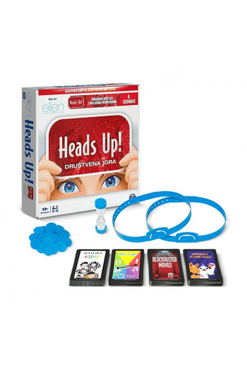 Zabavna i brza igra pogađanja iz kuće Spin Masters! Od imenovanja slavnih osoba, preko pjevanja do glupih naglasaka-pogodite riječ na kartici koja vam je na glavi prema tragovima vaših suigrača prije nego što vrijeme istekne! To je super zabavna i vesela igra ! Sa šest traka za glavu i 200 karata u četiri lude kategorije, Heads Up je super zabavna igra za dvoje do šest igrača, u dobi od 8 i više godina. S više od milijun prodanih igara, Heads Up! je urnebesna igra za obiteljska okupljanja i druženje s prijateljima, za ponesti na ljetovanje i kampiranje!