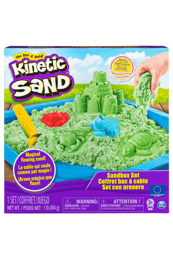 Kinetički pijesak je pijesak kojeg je teško ispustit iz ruku ! Drži se za sebe a ne tebe! Poput magije teče kroz prste ostavljajući ih potpuno suhima. Kinetički pijesak potiče dječje kreativne vještine, omogućujući im da uvijek iznova stvaraju sve što mogu zamisliti. Set Kinetic Sand Castle dolazi s 1 funtom pijeska, 3 kalupa, alatom za plažu i kutijom s pijeskom za igranje — kreativne mogućnosti su beskrajne! Kinetički pijesak nikada se ne isušuje, a ovaj mekani pijesak lako se čisti. Osjetite zabavu uz Kinetic Sand!