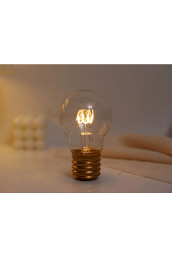 Dekorativna lampa u obliku žarulje sa natpisom dream u sredini koji svijetli u žutoj boji.