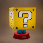 This Super Mario Icon Lamp is a great gift for Mario fans or anyone who loves games. Collectors of genuine Super Mario memorabilia will also welcome this addition to their collection. The lamp in the shape of a question block sits on a red round base, along with a beautiful blue ribbon decorated with icons from the world of Super Mario. This highly detailed lamp has been crafted with meticulous detail, staying true to the world of Super Mario. It has 3 brightness settings and the function of automatically turning off the night light after 20 minutes. This lamp can be powered by 3 x AA batteries (batteries not included) and can make a great centerpiece for any bedside table. The Super Mario Icon Lamp is officially licensed and approved by Nintendo.