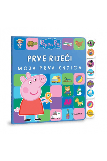 Slikovnica kartonka iz serijala ‘Moja prva knjiga’. Peppa Pig i prijatelji otkrivaju ti čaroban svijet prvih riječi!