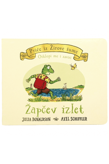 “Dobrodošli u Žirovu šumu, iz koje su se Žabac i njegovi prijatelji uputili na plažu. Što im treba za taj izlet? Otklopi poklopce i pogledaj! Biblioteka Priče iz žirove šume namijenjena je najmlađim čitateljima kojima će to biti prve knjige koje će ih uvesti u svijet rima Julie Donaldson. Napravljene su tako da zadrže pažnju male djece. Na svakoj stranici nalazi se dio koji se može otklopiti i djeca vrlo brzo počinju pogađati što se tamo krije, čemu uvelike pomažu i ilustracije Axela Schefflera. Ove pričice mogu pratiti već i djeca od godine dana, jer mogu aktivno sudjelovati u njima, otvarajući vrata od ormarića i podižući poklopce iza kojih se pojavljuju likovi i stvari iz priče.”